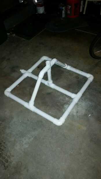 Ahora toma uno de la tubería de pvc de 1 1/4" y medir 1 1/2" a 2" y cortar dos de los. entonces no al hecho de que algunas personas podrían acabar diferentemente. Esto es muy importante. tomar 1 1/4" cuatro terminales y poner dos atajos en cada lado y conecte los codos de 45° a ellos. mantener la forma de cuatro sobre el orificio del centro en la base y hacerlo la altura derecha para fueron todos tres postes cabrán. no es fácil que tal vez alguien para ayudarle, pero este paso es muy importante ya que proporciona un gran apoyo para el poste de centro