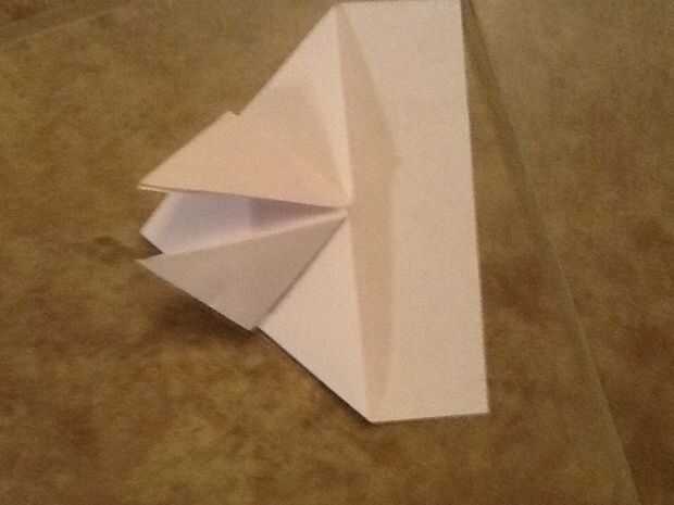 Doblar las aletas del triángulo delantero hasta la parte superior. Utilizar las fotos para ayudarte.