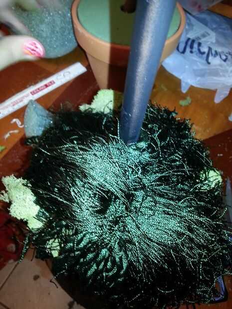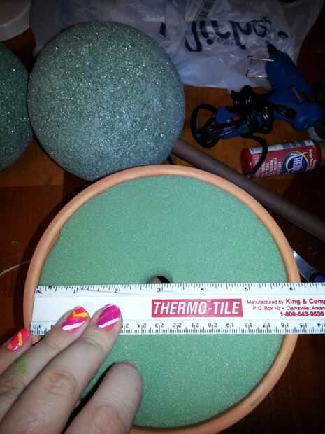 Cuando hotgluing el objetivo base, para el borde de la maceta. La espuma de poliestireno no necesita pegamento bien.
