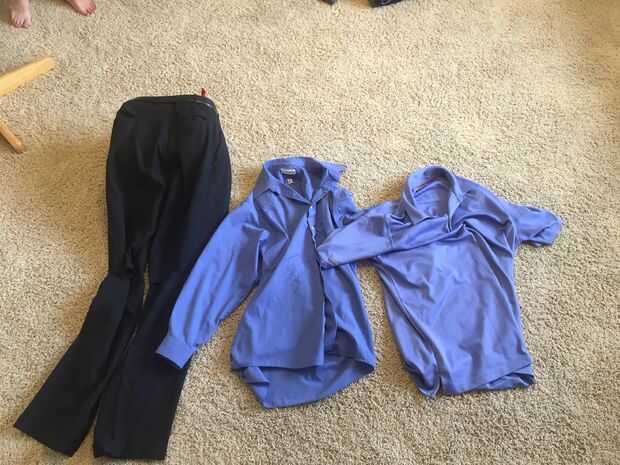 3. tienes que encontrar un par de sus propios pantalones que son del mismo color que los pantalones grandes (vamos a explicar por qué más adelante). Usted necesitará un cinturón que se ajuste alrededor de la cintura de los pantalones grandes.