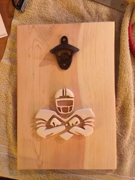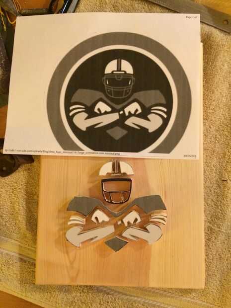 Una vez que todas las partes de su logo se recortan de la arena el patrón de papel apagado. Usar un papel de 100 grano arena. Después del papel ha sido enarenado apagado trabajo alrededor de los bordes de pieza suavizar los recortes. Mientras lija dan forma a las piezas individuales de la imagen. En el logo elegí formar que enfoqué fue redondeando el borde superior del casco hacia abajo, tomando el borde superior de las hombreras y redondeo los brazos. Utilizar una progresión similar de papel de lija para preparar la pared posterior.