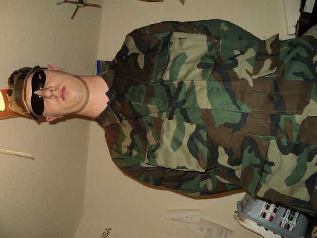 largo de los años he hecho muchos trajes caros, así que pensé que permite hacer una barata! Este hombre de ejército cuesta alrededor de $50. Usé un traje lluvia verde de wal mart, un ejército de la correa de la tienda de excedentes del ejército, golf