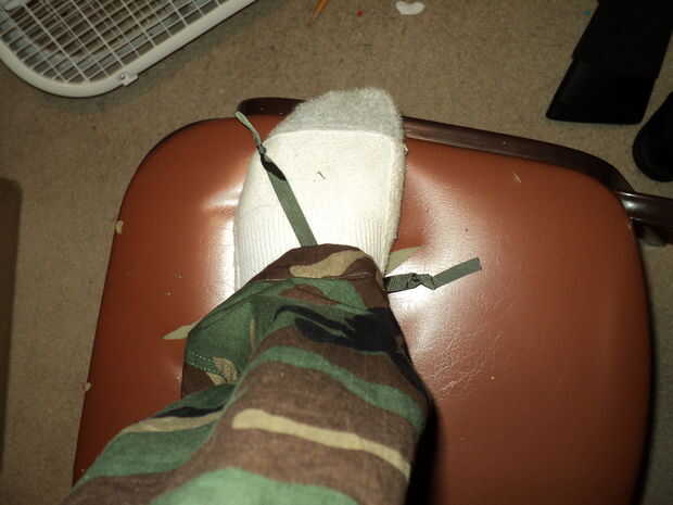 Pongo en los pantalones primero y luego un cinturón no olvide atar las piernas en la parte inferior (si tienes un brazo lateral y funda recomiendo instalarle ahora)