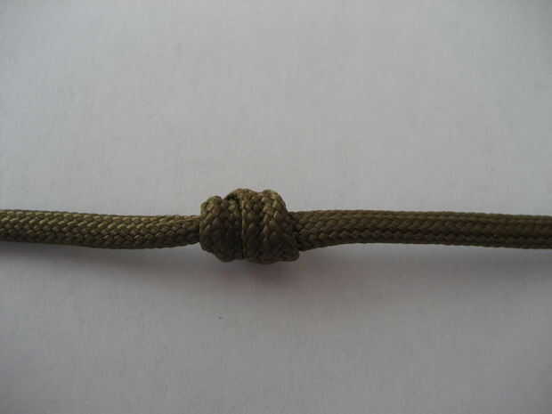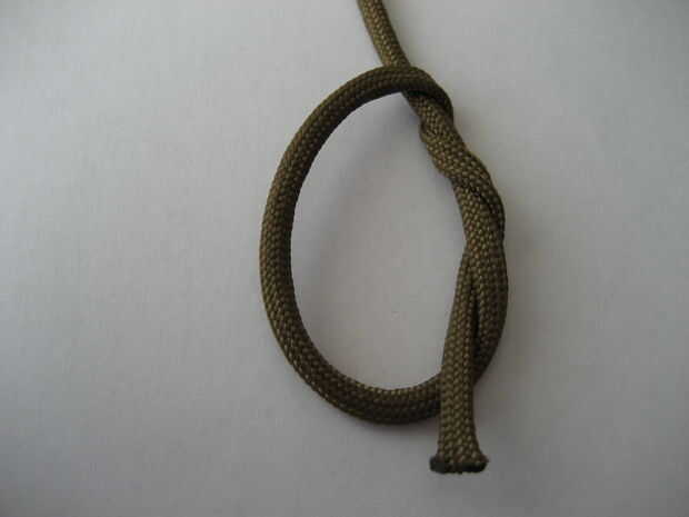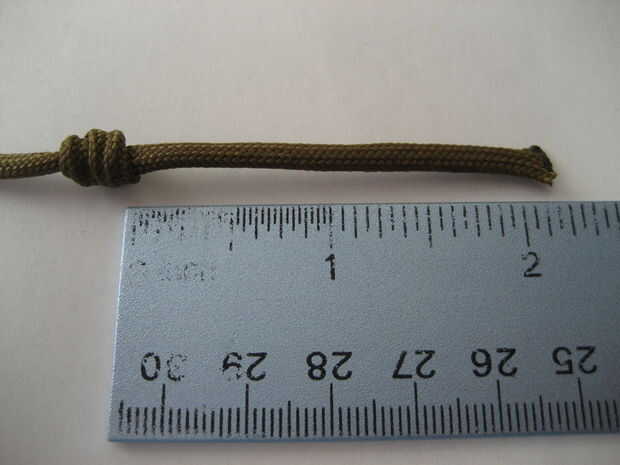 Hacer un nudo de tope como se muestra en la imagen y luego apretar dejando sobre 1-2" para el cañón.