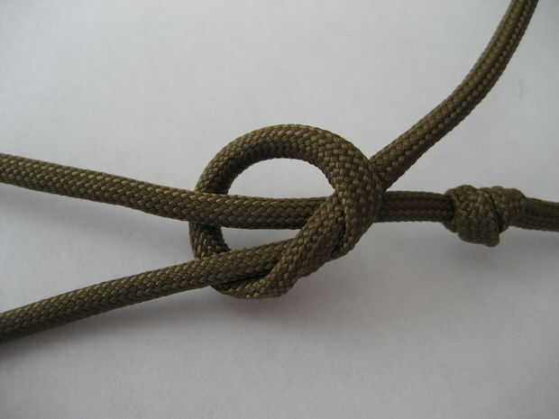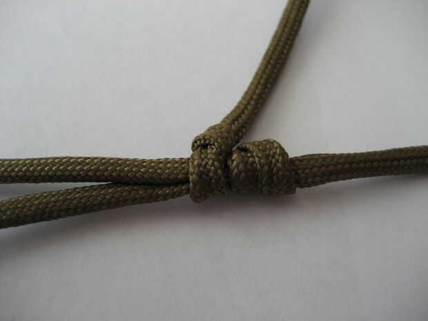 Empezar la culata de la pistola por hacer un simple nudo de 4" del extremo de la 18" pieza de paracord. Colocar este sobre la pieza larga del barril, ajuste y apriete contra el nudo de tope.