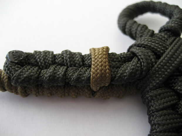 Ajustar el lazo alrededor del brazo de un hombre del ejército, por lo que es lo suficientemente grande como para ser fácilmente removido. Corte el cable corto por el bucle de 1/8 "desde el extremo de la pistola. Recortar el cable interior y derretir con un mechero.