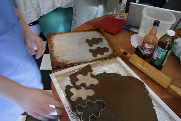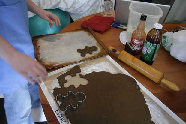 Cuando no tienes espacio para cualquier tiro más, cortar la masa en una bola, de propagación hacia atrás la masa hacia fuera y corte más. Continúe hasta que usted ha utilizado toda la masa.