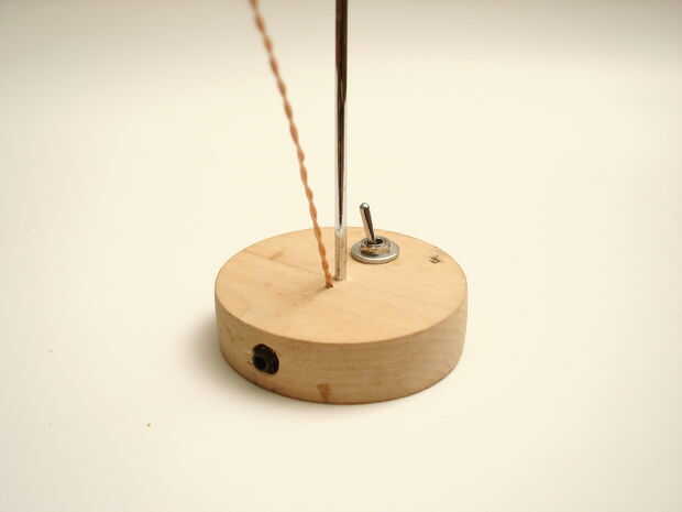 • Soldadas alambre de la energía de un tipo al interruptor entonces funcionó detrás en el agujero pequeño para ir a la bombilla.