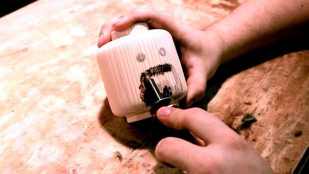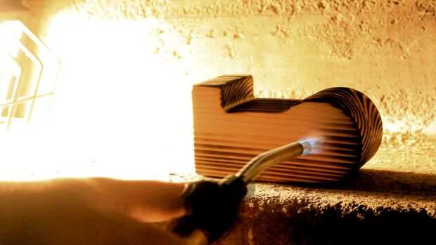 Al mismo tiempo, apareció también el calor para crear un acabado quemado en las piernas y las caderas. Esto se realiza con un soplete de propano y tiempo justo en cada cara para darle color.