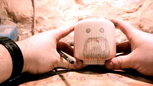 El Sr. Lego no parecía lo suficientemente amable así que pensé hacer un mini-yo sólo era apropiado. Usé un quemador de madera para crear una barba y ojos para burlarse de mi.