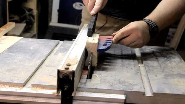 Las caderas son un poco complicadas. Comience con una pieza de 5-1/4" de largo. Para crear la forma de la Cala donde encaja la parte superior de las piernas, usé mi sierra de mesa. Con este procedimiento que establece una temporal cerca de ángulo en la tabla VI. Por mordisquear un poco apagado en un tiempo y mover la valla un poco cada vez, usted puede conseguir la forma adecuada.