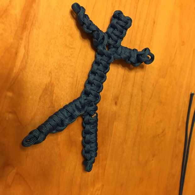 Que amante del ' cable. Mucho que hacer... Muchas posibilidades. Este pequeño individuo vino a la vida mientras estaba viendo un juego de pelota y tenía algunos paracord sentados. Mi equipo estaba perdiendo y solo estaba jugando con la pulsera de nudo/supervivencia cobra... Añadido unos brazos... Agregó el cuerpo... Tenía suficiente cable para hacer las patas. Esto no es el original, creo que la original se convirtió en juguete de gato de paracord, este es un clon.