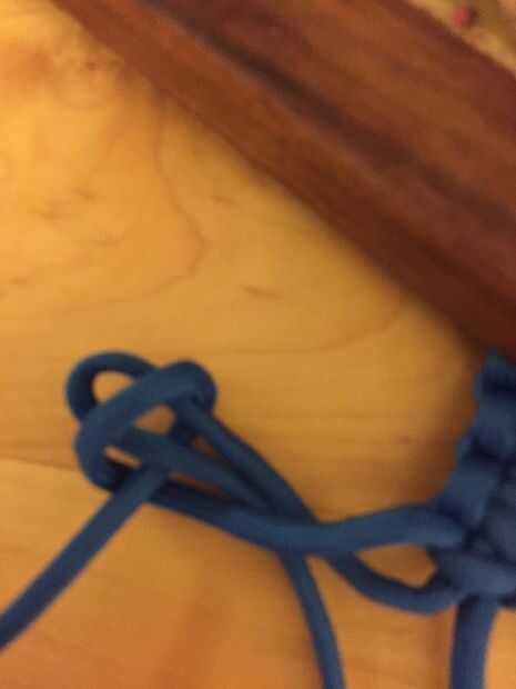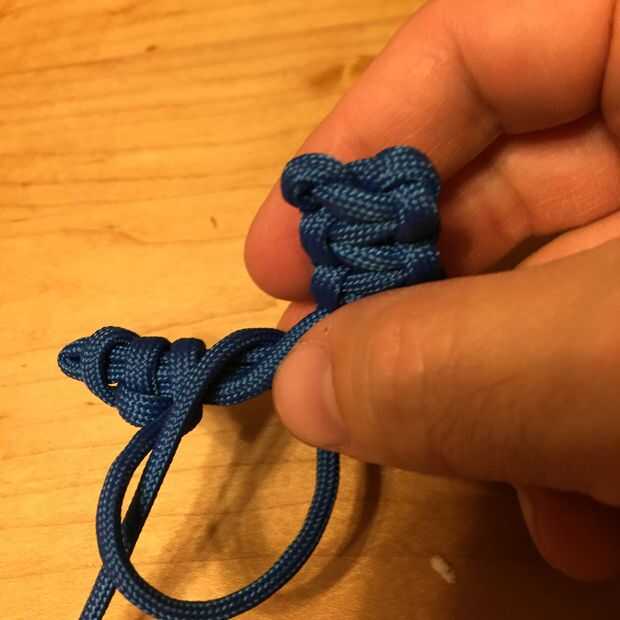 Con el arco sobre un brazo, tomar el extremo suelto e iniciar nudos de rizo en la muñeca y trabajar hacia atrás, hacia el hombro.