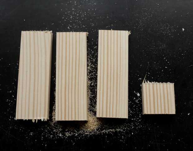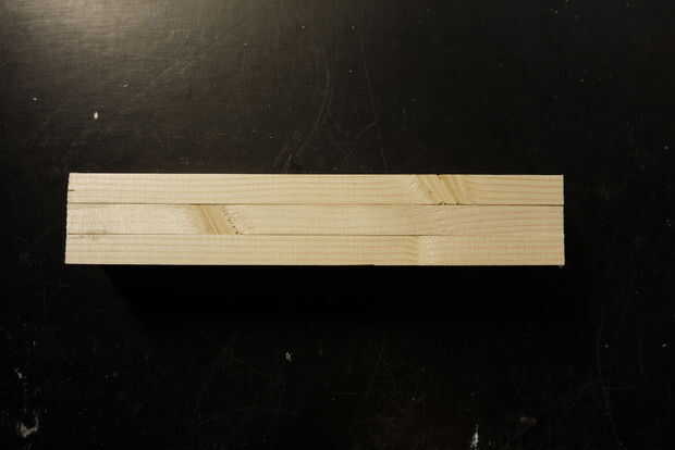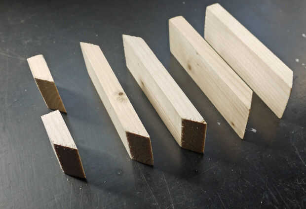 Unir las piezas de tres de 19 cm y serrar un ángulo de 80° en el extremo de la pieza.
