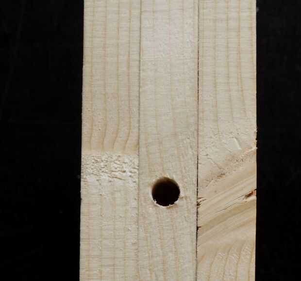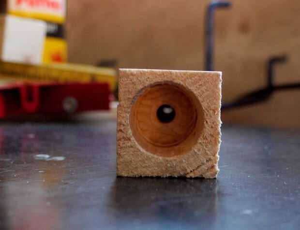 Perfore un agujero de 22 mm (5 cm de profundidad) en la parte superior el lado rectángulo de la pieza de 19 cm.
