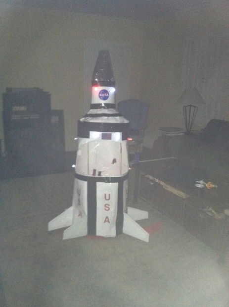 13. Encienda para arriba! He añadido el parpadeo rojo y LEDs blancos abajo de cualquier lado del cohete (puerto y estribor estilo) y entonces colgaron un montón de LEDs rojos de la parte inferior usando limpiadores de pipa. La parte inferior que luego fueron metidos dentro de las "llamas". FYI - mi aquabrites duró mucho tiempo - sin duda más de 8 horas. YMMV.