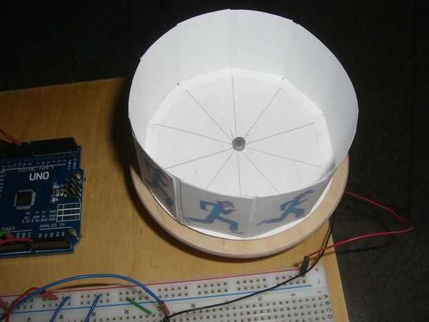 Ahora pega la película para el círculo de papel y colocarlo en el tablero de la escena de contrachapado. Un pequeño imán de neodimio en el centro va sujetando a la etapa.