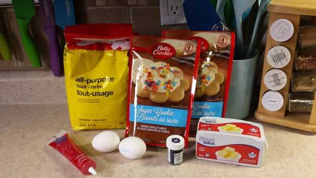 -2 paquetes de mezcla de galletas de azúcar (3$ cada uno) (puedes seguir adelante y hacer su propio si quieres me id sólo figurado ahorrarme algún tiempo obteniendo los Premezclados, son realmente fáciles de hacer, en serio)