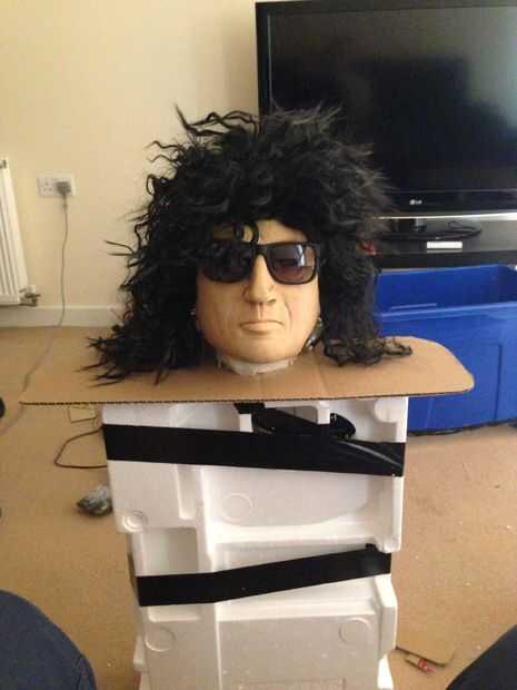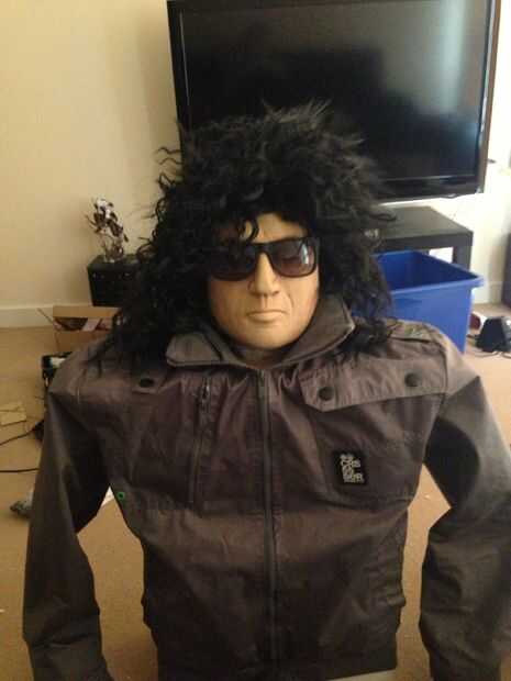 Simple parte de aquí, me puse una máscara que tenía ya que compré una peluca de una tienda de disfraces en el centro de Londres. La máscara realmente Acomódesela debido a las bolsas de dentro y la peluca hace el look cabeza grande (un poco como un Bon Jovi el rockstar). Para acabar el look he añadido un par de Raybans que ya tenía, esto realmente ayudó a que él no tenía bolas de ojo: 0