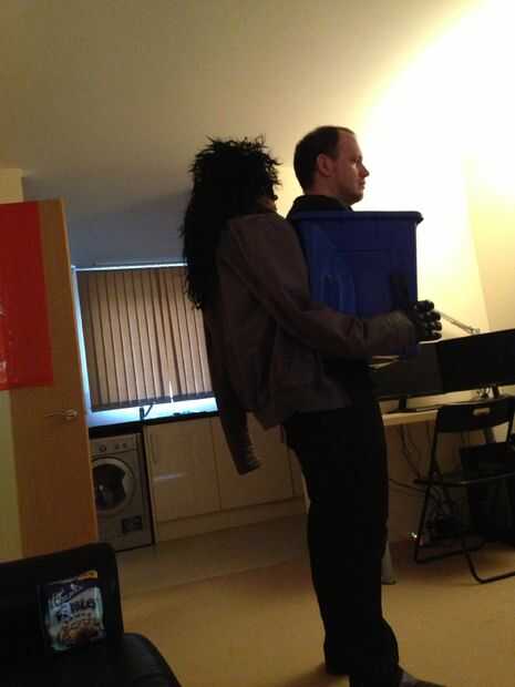 Como se puede ver en la foto tenía un prototipo bastante sonido pero estaba no contento con el resultado, la ilusión no estaba sólo miraba como un individuo de pie con medio cuerpo colgando de él. Lo que me di cuenta era que el agujero en la caja no era lo suficientemente grande en la parte posterior así que miré demasiado lejos del torso para dar el efecto. Hice el conjunto más grande y esto parecía ayudar, el único problema era que el plástico se estaba volviendo muy endeble.
