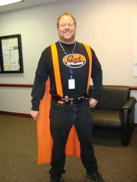 me encantan estos trajes de geek squad que hice hace unos años. Orgulloso de ser un geek! Las camisetas Geek nos dieron mis padres esposos. Mi esposo se negó a usar las camisas a menos que les hice en un traje porque trabajó en él. Pensamos que sería divertido que si fueran geek con cabos que tenía un cinturón de utilidad equipado con bola de goma, calculadora, walkie-talkie, pluma, muerte estrella Pez dispensador, regla de diapositiva, pequeña cinta métrica, un localizador y una batería potencia soplador de polvo. Utilizamos vidrios de una película en 3D que quité las lentes y la cinta sólo aplicada a la nariz media pedazo friki hacia fuera. Nos encontramos con el cinturón de utilidad reflexiva y el reflector naranja corbata en casa Depot que realmente se utilizan para apretar algo a un camión para que no caiga hacia fuera. Todo lo que utilicé para el cinturón de utilidad fue encontrado de alrededor de la casa y conectado casi todo con Velcro y mano cosidas pequeñas correas para los elementos pesados. El material era muy barato y conseguí en Wal-Mart. Ya sabes donde tengo todo. Este traje fue todo bajo $50,00 y pude hacer dos. Aquí está cómo hacer tu propio paso a paso.