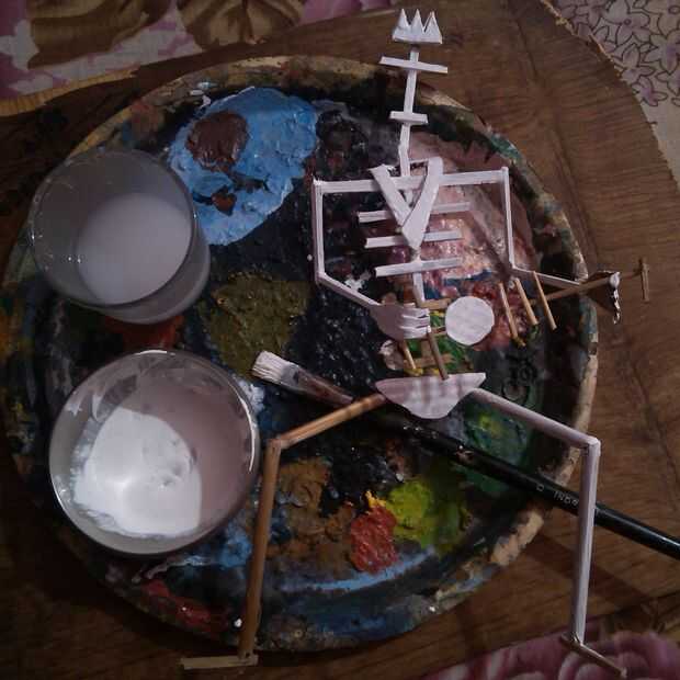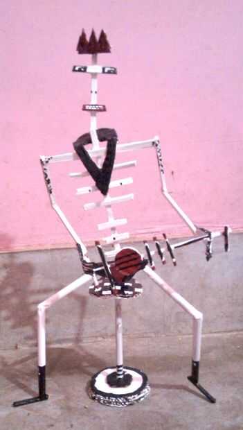 también hice una silla especial para con palo de bambú y cartón cortado en círculos.