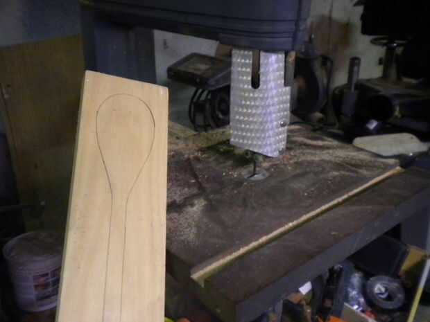 a continuación trazar un contorno de la cuchara que desee en el bloque de madera.