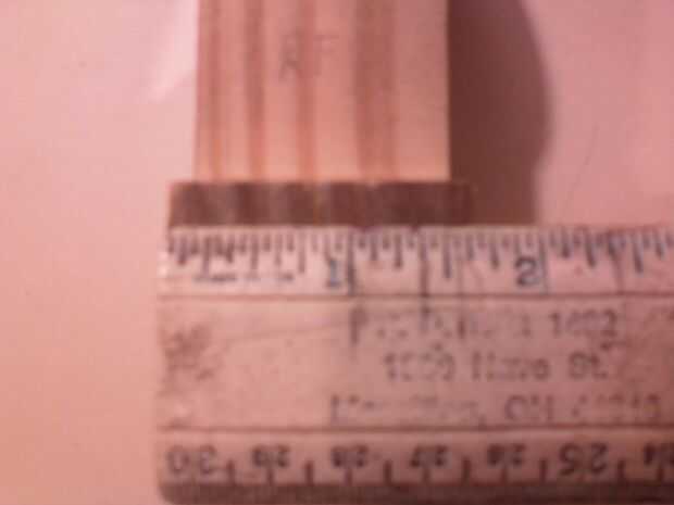 Los pies y las piernas deben estar cerca de imágenes de espejo uno del otro y se hicieron de los 2 bloques de pino (cortar y recortar con una sierra de banda) que fueron 4 3/16 pulgadas de largo, 3 1/2 pulgadas de ancho y 10 de 1/16 pulgadas de altura. Las piernas y los pies tenían muchas dimensiones y ángulos a ellos. Tengo un diagrama, en pulgadas y s que describe varias medidas largo, altura y anchura de sus muchas características distintas de la foto.
