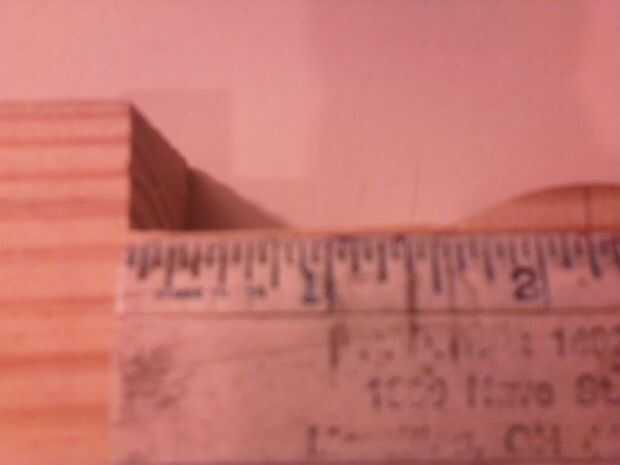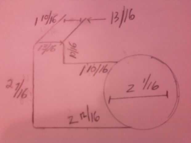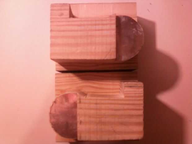 El arco en la parte superior de la pierna fue creado seguimiento un disco que tenía un área de 2 1/16 pulgadas. Por último, utiliza para cortar su contorno de metal de un envase de galletas, divide el diámetro apropiado y adornado con un recorte de estaño para obtener la forma para el interior de la parte dentada superior de la pierna. Yo entonces precedido al pegamento del metal a la madera una vez conseguí la forma exacta que necesitaba.