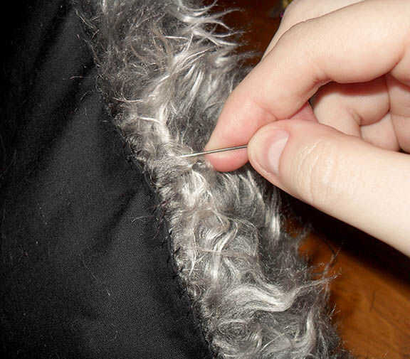 Toma tu aguja y recoger suavemente en la piel, teniendo cuidado de no para filtrar sus puntadas. Aflojar los pelos que quedan atrapados debajo de la costura y ahueque hacia fuera. En la foto de arriba, haya seleccionado los pelos sobre mi mano, los siguientes no. También puede hacer un pase de cosecha rápida en los lados de la almohada si hay cualquier bits atrapados feos de pelo. Puede sonar tonto, pero te alegrará de que tomó un minuto para darle esta pelusa extra.