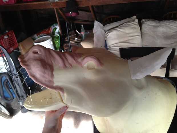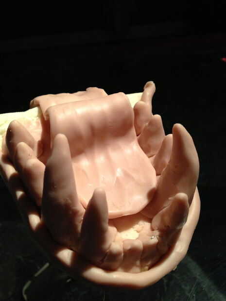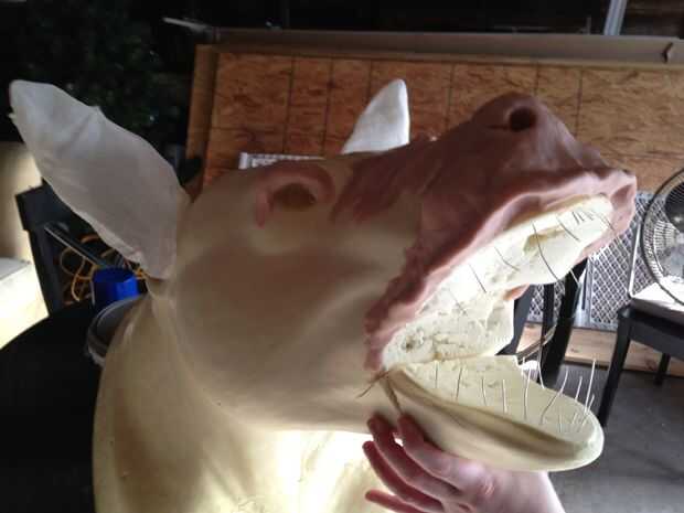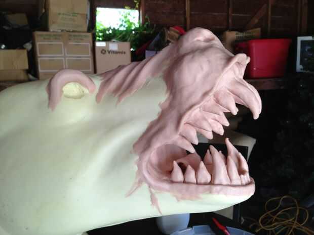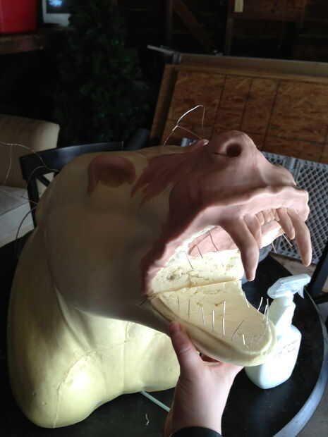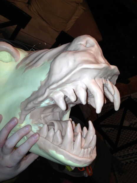 fui un poco loca con la arcilla jajaja. He añadido una nueva nariz, así como algunos "mejillas" para que se vea como que es latigueo. Nota las arrugas en la nariz. He añadido algunos media mirando los huesos de la frente. He formado "labios" y los dientes. Usé alambre de armadura en los dientes. Corte sobre una pieza de 3 pulgadas y rizado a uno de los extremos para parecerse a una "b" para sostener la arcilla. He formado cada diente aproximadamente en mis manos, había pegado en el cable y había pegado el extremo recto en la mandíbula. Lo hice con la mandíbula suelto, tratando de formar la boca con la mandíbula unida es un dolor enorme en el culo. Cuando haya terminado, coloque la mandíbula inferior con una pistola de pegamento caliente. No seas tímido, usar un montón de cola.
