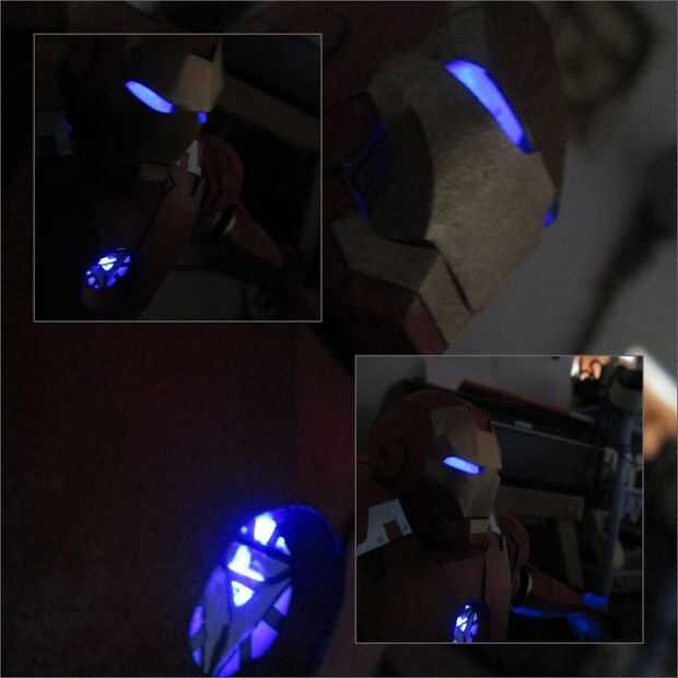 mi opinión sobre guante de repulsores de Iron Man. Sustituye el guante de estilo típico brillo LED utiliza un flash de cámara desechable para añadir un poco de la llamarada. El guante se hace con papercraft simple.Nota: Mi cámara no era realmente lo