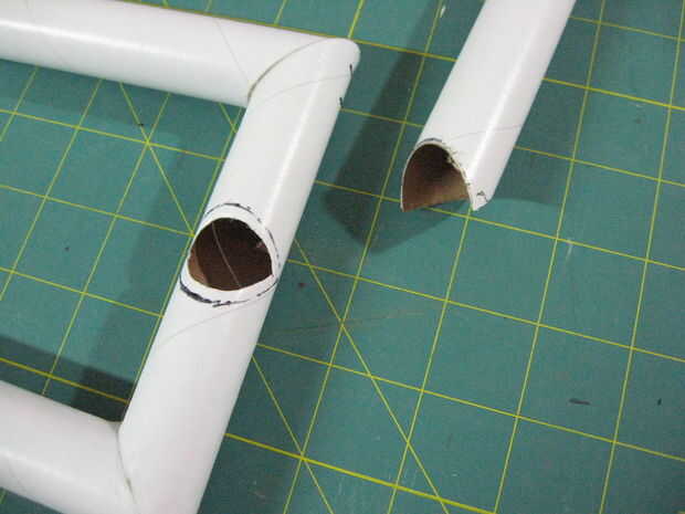 Los dos tubos principales conducen a tubo de uno escape. Antes de pegar, las superficies de los tubos se rugosa hasta con papel de lija.