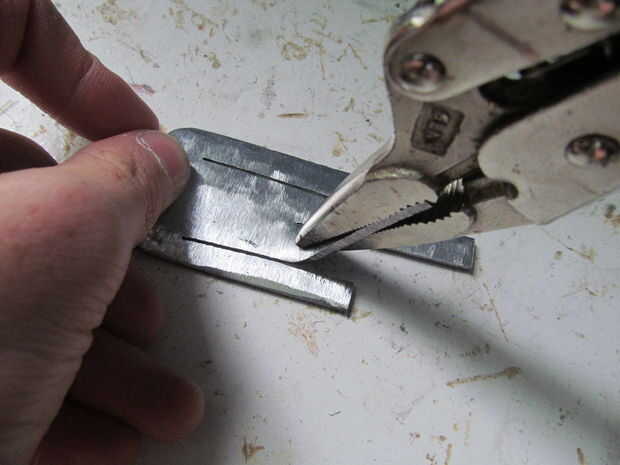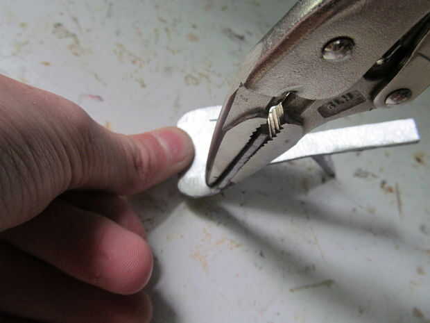 -Uso de un archivo para quitar cualquier marca a la izquierda del sostenedor del lápiz por el vice grips