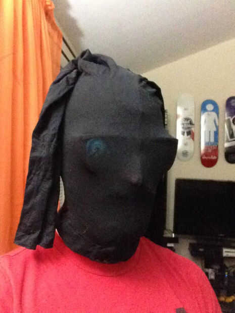 El último paso (y esto que definitivamente se necesita ayuda) es traer la camisa de manga larga con pantalón negro y adjuntarlos juntos en varios puntos con pernos de seguridad.