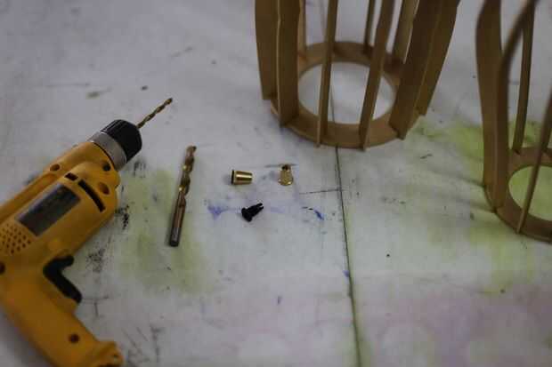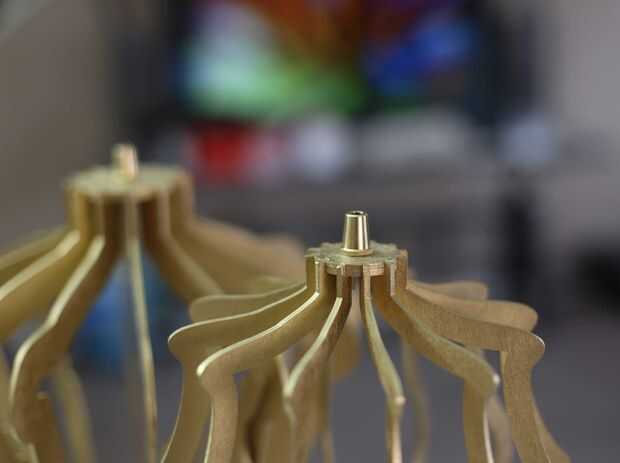 Una vez montado, he pintado los marcos de la escultura con una pintura en aerosol oro que coincide con el hardware de cobre amarillo muy bien y realmente hace que el cable de red pop. Por último, he diseñado el archivo de corte láser con un agujero pequeño de referencia para marcar la ubicación de la descarga de tracción pero quería esperar hasta que tuviera el hardware de la mano antes de perforar el tamaño del agujero final que resultó para ser menos de 3/8". Pegué el pedazo negro del alivio de la tensión en la parte inferior del marco con cola de CA, aunque en retrospectiva esto probablemente no es necesario ya que la pieza no tendrá ninguna oportunidad de perderse una vez que la toma se ha colocado en el extremo de la cuerda.