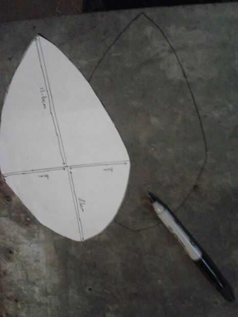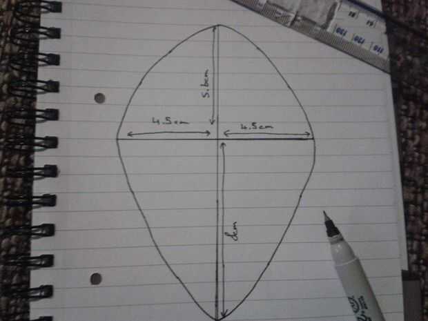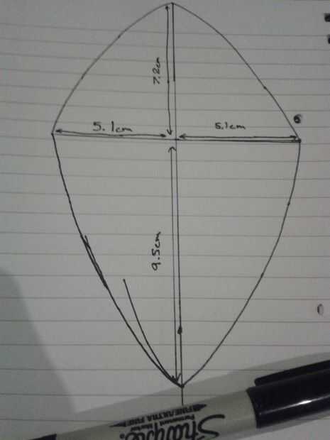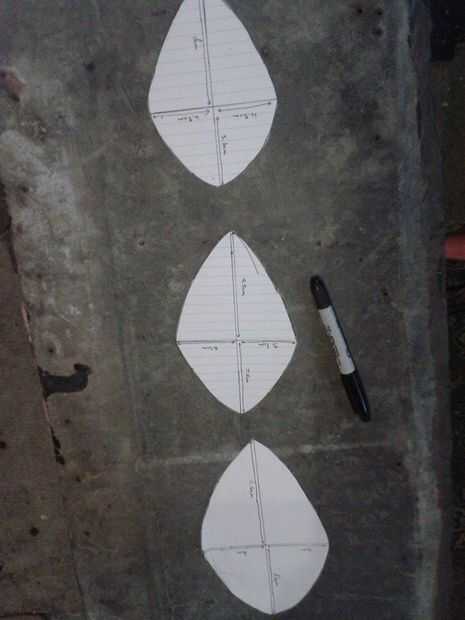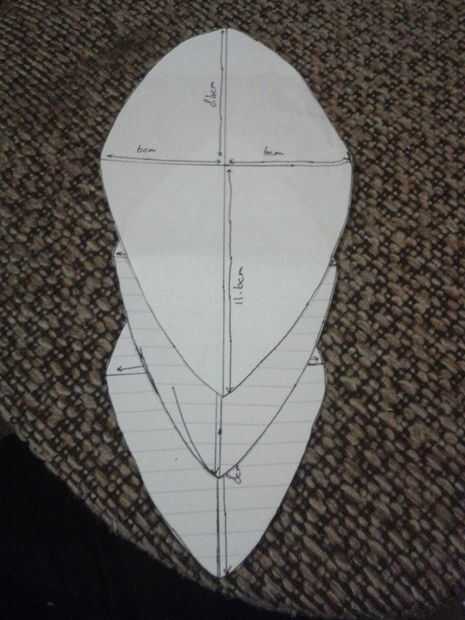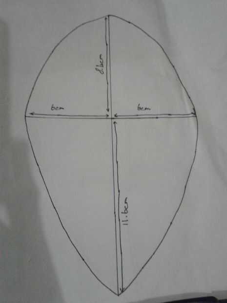 Primero dibujé una cruz, marca el centro y la longitud y la anchura de la sección amplia de la forma y hecho las curvas de línea a línea. Mis medidas son arriba pero debe tomar en cuenta su diferencia de tamaño del hombro a los bíceps más baja y el ancho de ambos de aquellas partes del cuerpo. Puede tomar estas medidas (sobre todo la longitud) y dividirlos para cubrir todas las tres piezas.