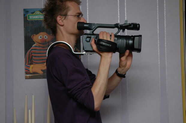 Hecho fácilmente de un soporte de canalón de aluminio. Usted tenga que modificar la longitud y la curva para adaptarse a la propia videocámara. La esponja de reemplazo de un smoothener plástico se utiliza para el resto del hombro.