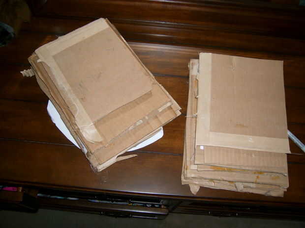 Paso uno: encontrar gratis grandes, cartulina plana cajas de la tv funcionaría mejor, ya que sería más fáciles cortar en pedazos uniformes, pero se pueden utilizar cajas de tamaño medio así. Pilas también pueden hacerse con la mitad de piezas, como ambos lados de la parte superior de las aletas de la caja, mientras adhiera todo sólidamente. Realmente encontré esto es una idea bastante buena porque te ayuda a ojo de la bola del centro del objeto, al colocar accesorios.