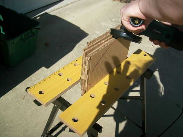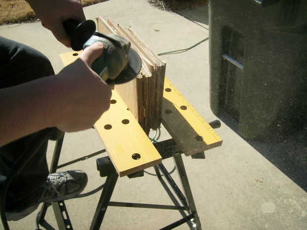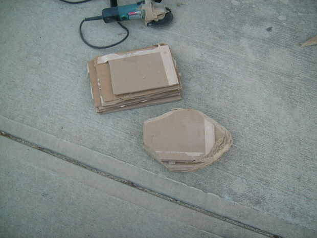 solía una amoladora lop de trozos grandes de cada bloque, desde 'abajo'.  Cada pieza debe ser aproximadamente simétrico, y los lados deben ser uniformemente pendiente y en.