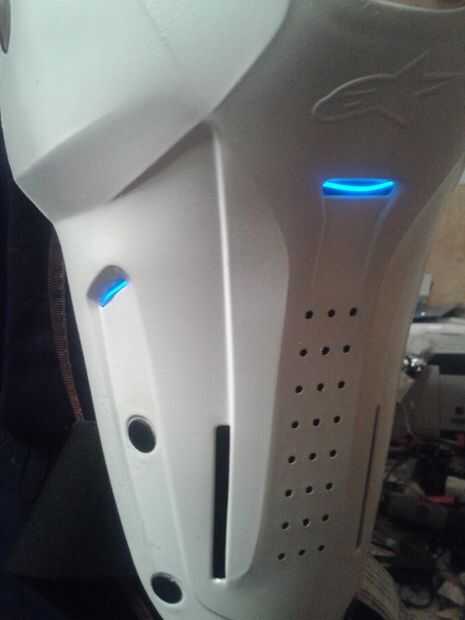 a continuación, compré algunos EL alambre color azul de tiendas en línea. Usando pegamento caliente, funcionó EL alambre en el interior de las almohadillas y había pegado hasta donde sólo demostró en unas ranuras abiertas desde el exterior. Usa algún cable eléctrico negro para ocultar la mayor parte de EL alambre, incluso en el interior donde no se puede ver pero la luz del alambre extra puede brillar a diferentes partes de las pastillas, así que para evitar el brillo extra, cubrí sólo con cinta.