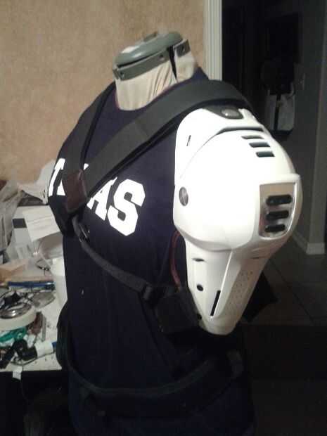Esto es sólo la parte del hombro del traje. Sigue trabajando en el resto, que mal sube pronto.