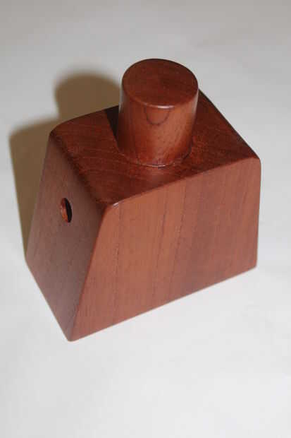 El cuerpo era otra parte sencilla. La forma es fácil de obtener de los diseños. I utiliza una sierra para cortar hacia fuera y luego la lija para arriba. Los agujeros del brazo son centrales de ancho y no muy lejos de la parte superior. Perforar 2 30mm en la parte inferior para clip. La espiga en la parte superior debe ser hecha. Se trata de 30mm de diámetro que coincida con el agujero en la cabeza. Es 29mm en la parte superior. Esta forma cónica permite la cabeza se deslice con facilidad. También Perfore un agujero de 30mm en el cuerpo a esta clavija