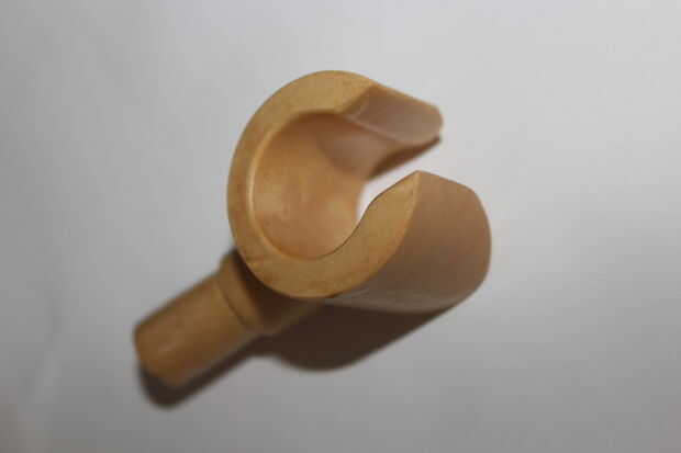 Hay 2 partes a la mano. La espiga esté con diámetros de 2, 1 que se adapta a la mano y el otro más grande. La otra pieza se da vuelta para el diámetro correcto. Taladre un agujero en el lado que se adapta a la otra pieza y pégala en. Seco se puede perforar hacia fuera el centro de la mano. Vi hacer 2 corte en el frente de la mano con el elegido. Radio de la parte inferior de la mano con una lijadora.