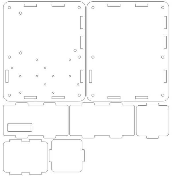 Entonces tenemos que cortar el tablero mediante corte por láser. Supongo que usted no tiene un láser de corte en casa, usted puede encontrar algunos en el espacio de hacker cerca de usted fácilmente. Si no hay ningún espacio de hacker cerca, puede tratar el suministro de servicio de corte láser por Seeed.