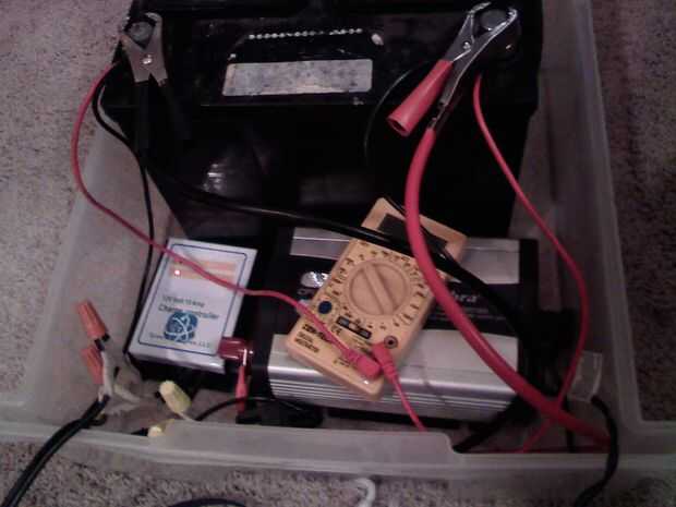 Hay algunas sutilezas con los componentes. Por ejemplo, un inversor de squarewave no es tan grande como un inversor de onda sinusoidal y un inversor de squarewave no funciona con muchos productos electrónicos sensative. Algunos cargadores son baratos y realmente pueden dañar las baterías. Tenga en cuenta que algunos llevan las baterías funcionan mejor que otros y algunos mejores que otros cargadores. No se olvide de mirar los comentarios antes de una compra! Aquí utilicé sólo una batería de coche estándar, pero estos no duran mucho la manera en que los estamos utilizando. Mantener un ojo hacia fuera para las baterías de "ciclo profundo". Las baterías se miden en "amp horas." En nuestro caso, se puede estimar cuántos vatios pueden ser alimentados por una hora con la batería de esta fórmula: