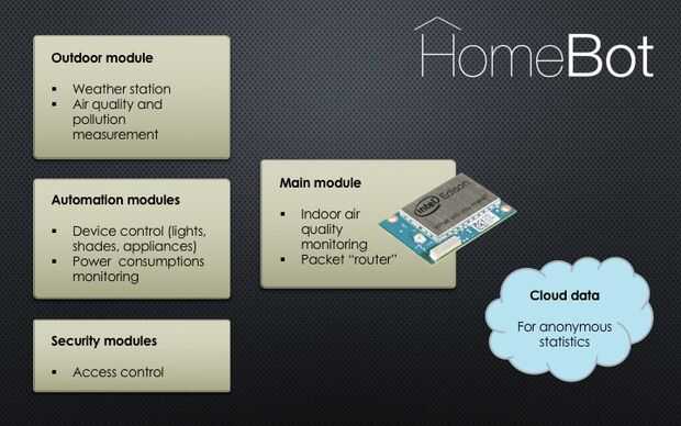 HomeBot es un proyecto que hacer tu casa inteligente con Edison de Intel. Nuestros objetivos son: