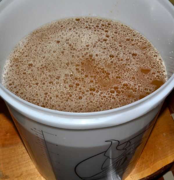 Poner algo de agua a 22° C en el fermentador, añadir el mosto y la infusión de lúpulo (con un colador). Añadir el resto del agua hasta 23 litros, también a 22° C.