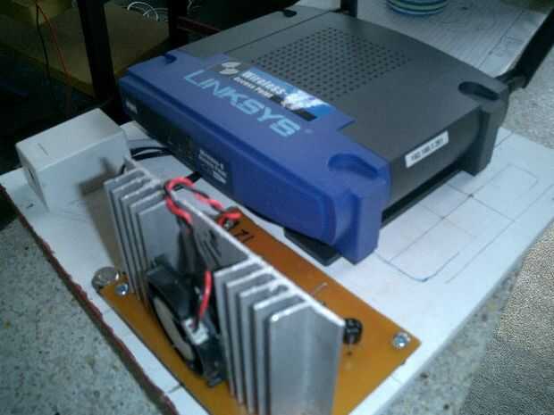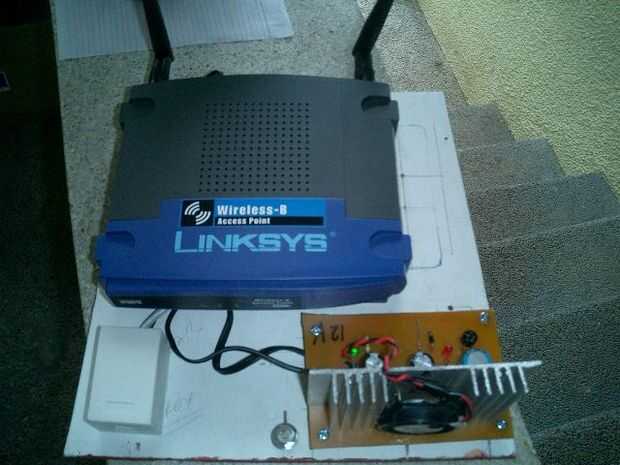 Ver cuadro #2 y #3, se vería como esto después de poner el AP y el regulador. Tener en cuenta que hay un tornillo cerca del regulador, se utilizará para sujetar la madera a la papelera plástico luego. La caja modular RJ-45 es parte de la garita hizo. Puede hacer su propio POE usando este enlace (http://www.nycwireless.net/poe/) como referencia, esta es una alternativa más barata que funciona bien.