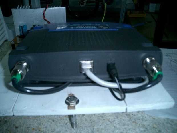 Estoy usando un cable RG-58 (50 ohms) de la AP de Linksys a la antena externa, conector compatible para este particular Linksys es RP-TNC.